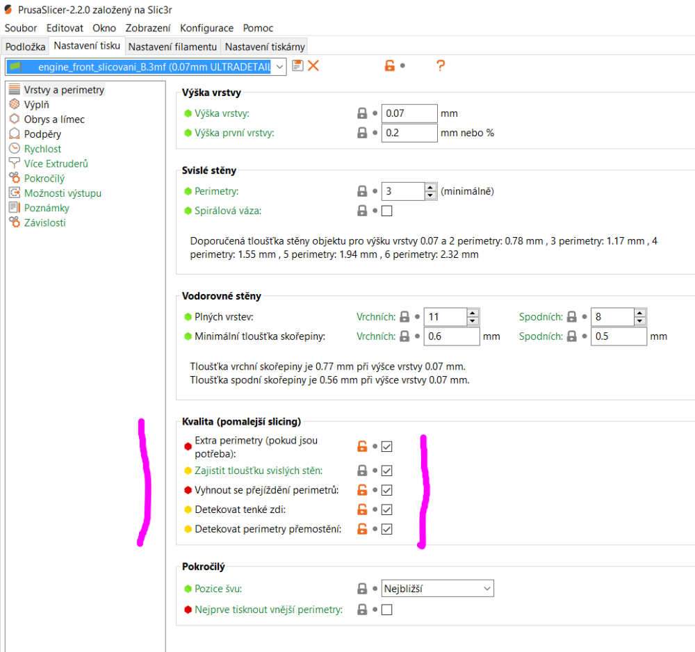 Tisk ten vrstvou vede k hezmu povrchu, ale i tch 0.2 mm u takovto makety je docela dobr.
