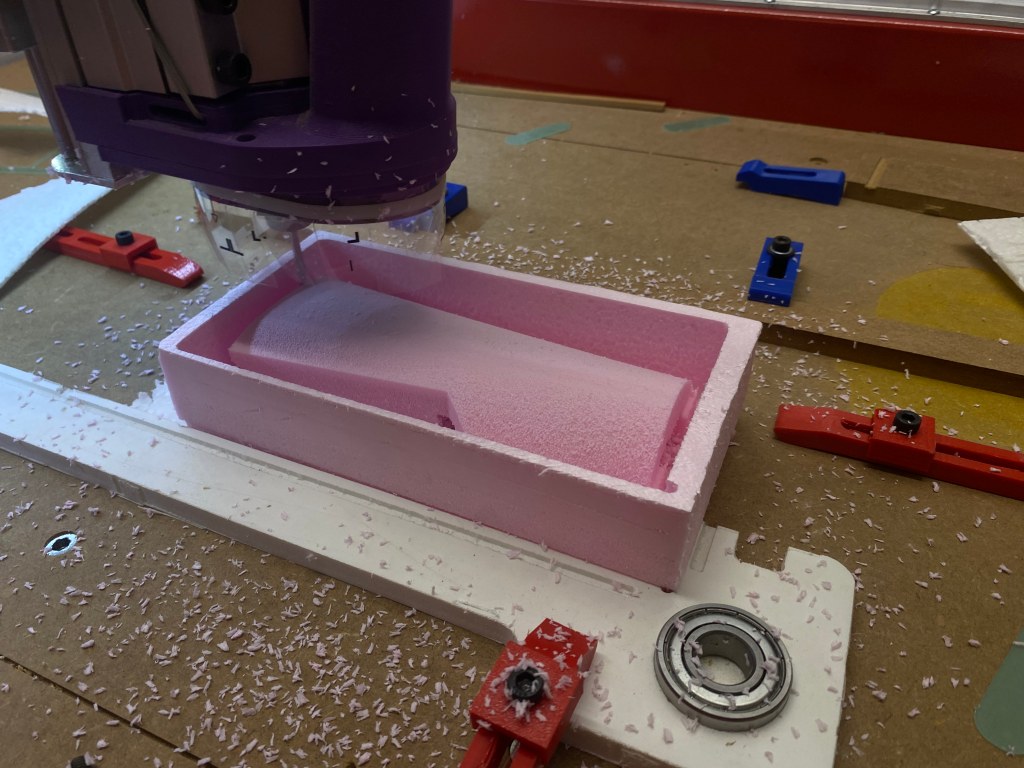 Postup jsem u popsal zde: Upnn podtlakem na pravtko. Obrobm nejdve z jedn strany dlc rovinu trupu a dutiny trupu. Zrove vyrobm na obvodu polotovaru osazen. Potom to otom, polom na blok osazenm na pravtko a obrobm lcovou stranu trupu.
