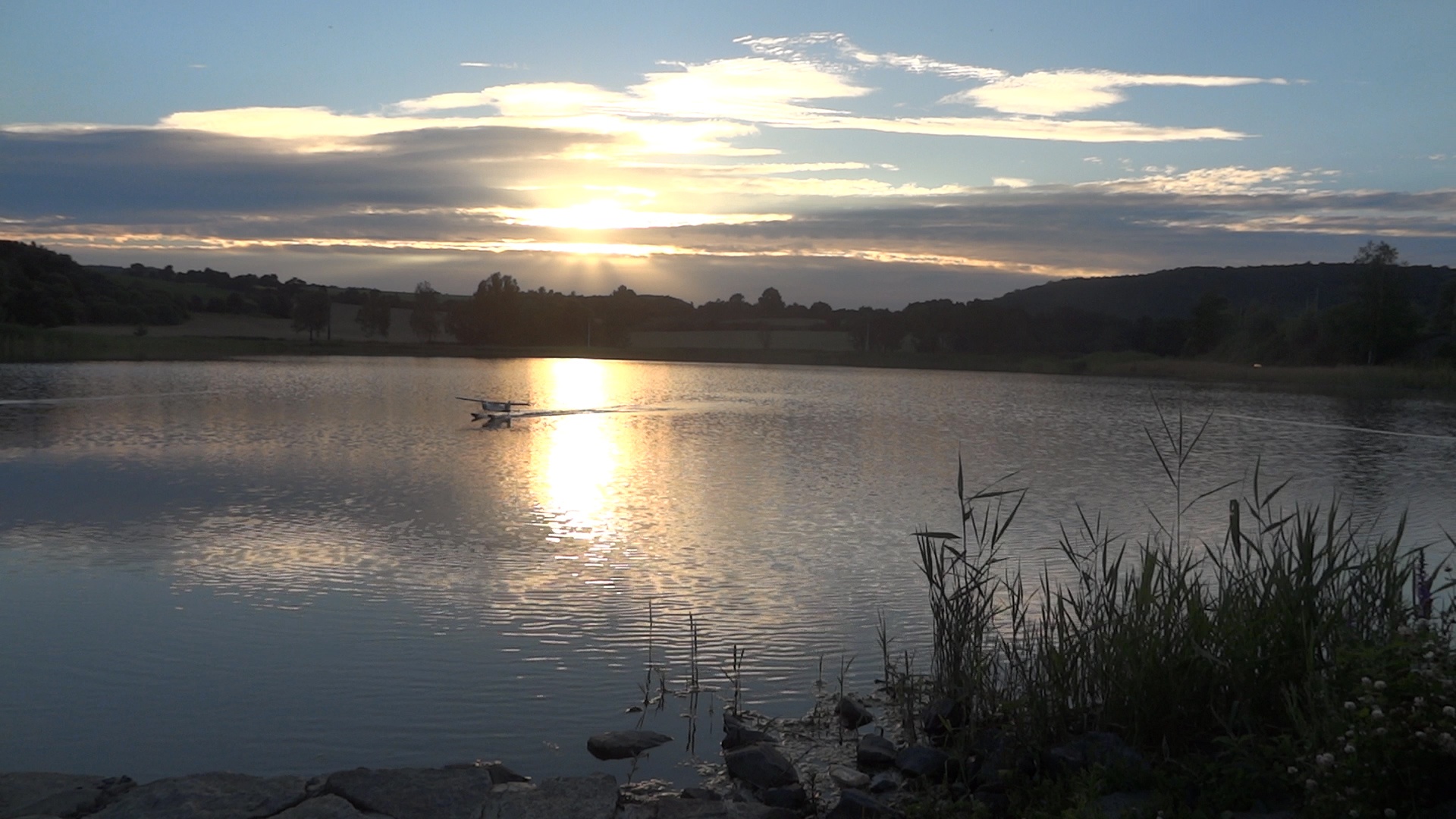 Uvm si jet njakou minutu start a pistn v paprscch zapadajcho slunce. Vedou se mi u pkn pistn, kdy vydojm Beavera nad vodou a do pln nataen vkovky a letadlo krsn sedne na vodu bez odskoku. Hldm si ale bedliv stopky, v tomhle rybnhu bych nechtl pro Beavera plavat! Voda je zarostl, zelen.