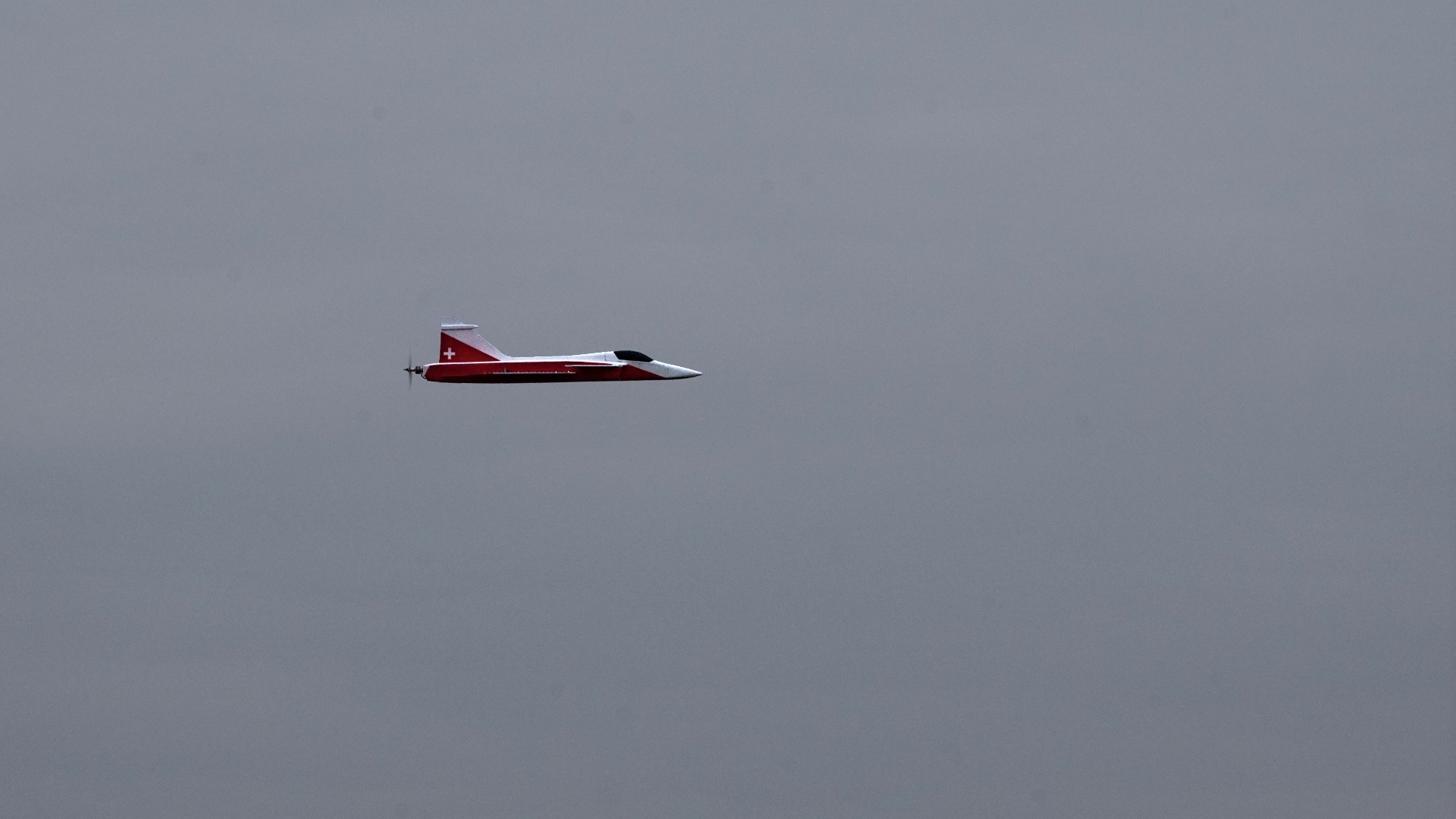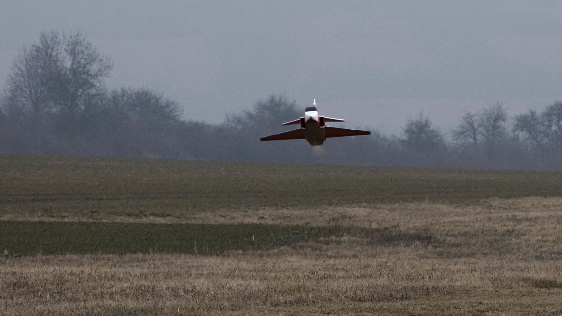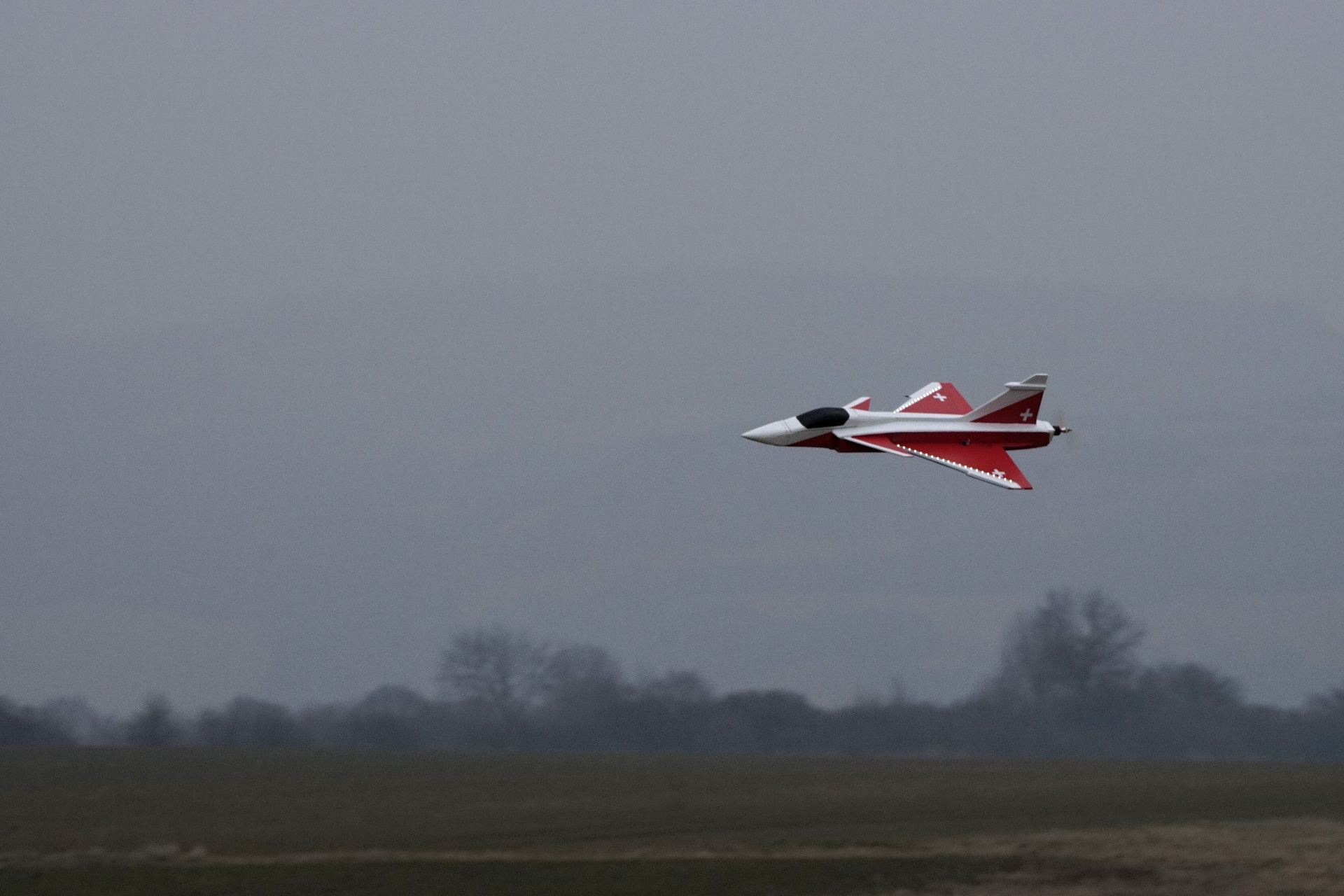 Na létání s našimi depronovými potvorami je ideálnì, na focení už ménì pìknì. Šedý horizont, šedá obloha, šedé všechno okolo nás. Ale je prakticky bezvìtvìtøí, nebude žádná turbulence.