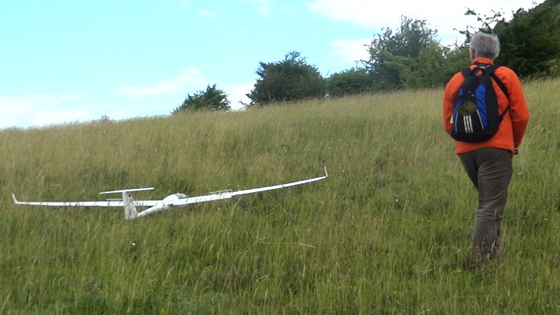 Pøistání, ze kterého jsem mìl obavy, probìhlo bez komplikací, úèinnost brzd pomùže pøivést letadlo na zem i na svahu, kde se vítr snaží poøád model zvedat, sestup lze brzdami pohodlnì øídit. Zažil jsem mnohokrát, kdy jsem musel model v závìreèné fázi pøistání "pøibít" k zemi a ještì se bát toho, že vítr letadlo podfoukne. Vidìl jsem to dnes i u kolegù. Ventus šel dolù jak po kolejích.
