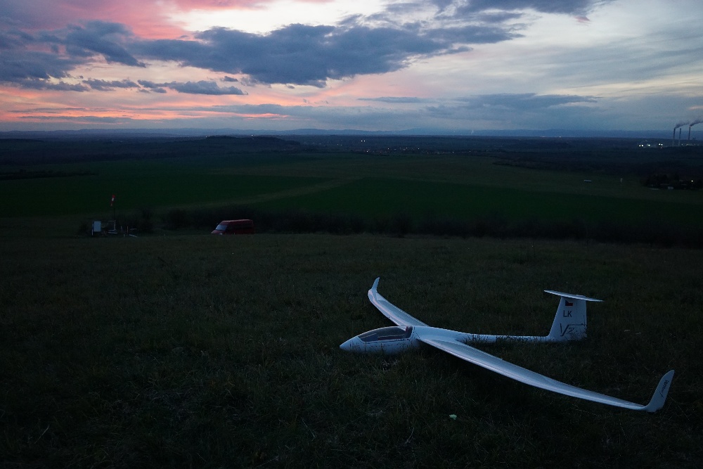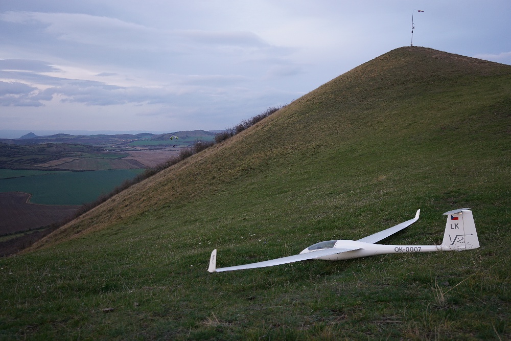 Ruèièka na hodinkách už bohužel leze k šestce a mì dochází, že tohle není Timber s pozièními svìtly, že ještì musím sletìt dolù a za chvilku se zaène rychle šeøit. Odpoutávám se s Ventusem od svahu, letím smìrem nad letištì a jdu dolù. Moc dobøe to nejde, nohy v keckách po kamenech kloužou, mìl jsem si vzít pohory. Jak klesám, zmenšuje se letadlo nade mnou a já na nìj zaèínám blbì vidìt. Pøidávám do kroku. Jdu na louku napravo od cvièné louky, tam sednu. Snažím se louku mezi koukáním nahoru na letadlo prohlédnout, objevuji novì natažený elektrický ohradník, ale i tak je tu místa dost. Zároveò pøemýšlím, jak se odstrojit, je mi vedro. Èepici už jsem sundal v sedle, ale teplou flízku a bundu sundat nemohu, dokud letím. A tady dole je patnáct stupòù a bezvìtøí. Letadlo je stále nìjakých dvì stì metrù nade mnou, utrácím rychle výšku akrobacií a potom v prùletech kolem sebe. Krásnì to hvízda, ale už je opravdu prd vidìt. Dávám plné klapky, plné brzdy a strmì klesám na vyhlédnuté místo. Když je letadlo u mì, pøekvapuje mì jeho dopøedná rychlost. Zapomnìl jsem, že tady dole tentokrát není žádný vítr. Letadlo zpùsobnì keclo do trávy, po bøiše ujelo ještì nìkolik metrù a je klid.