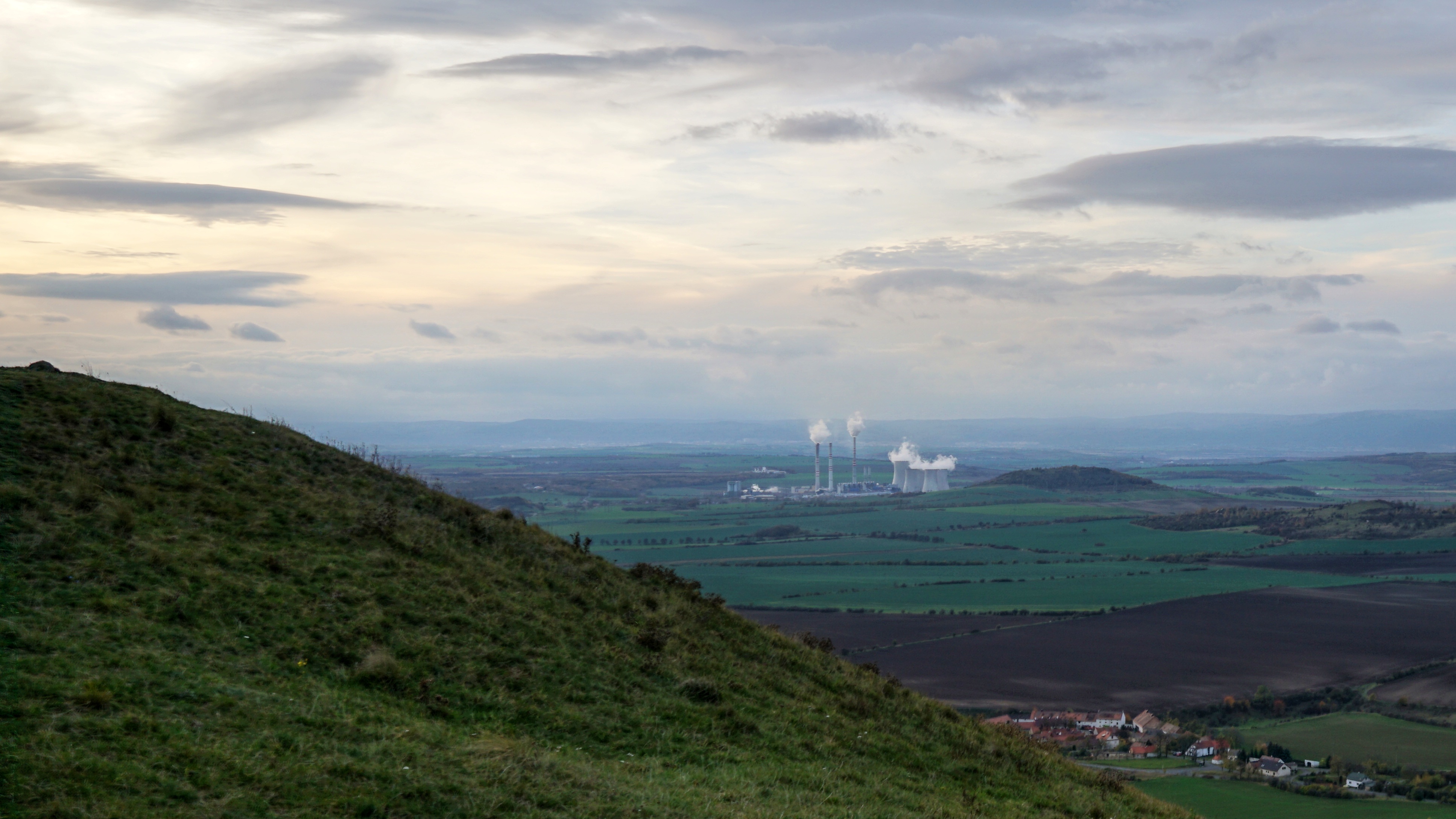 Až tìsnì pøed Ranou vidím na chladící vìže elektrárny Poèerady. Pára z nich vycházející indikuje vítr!