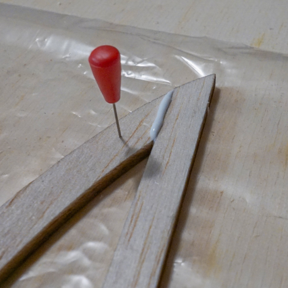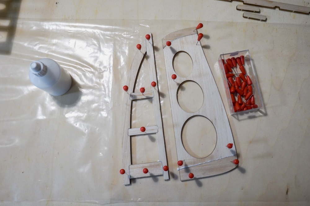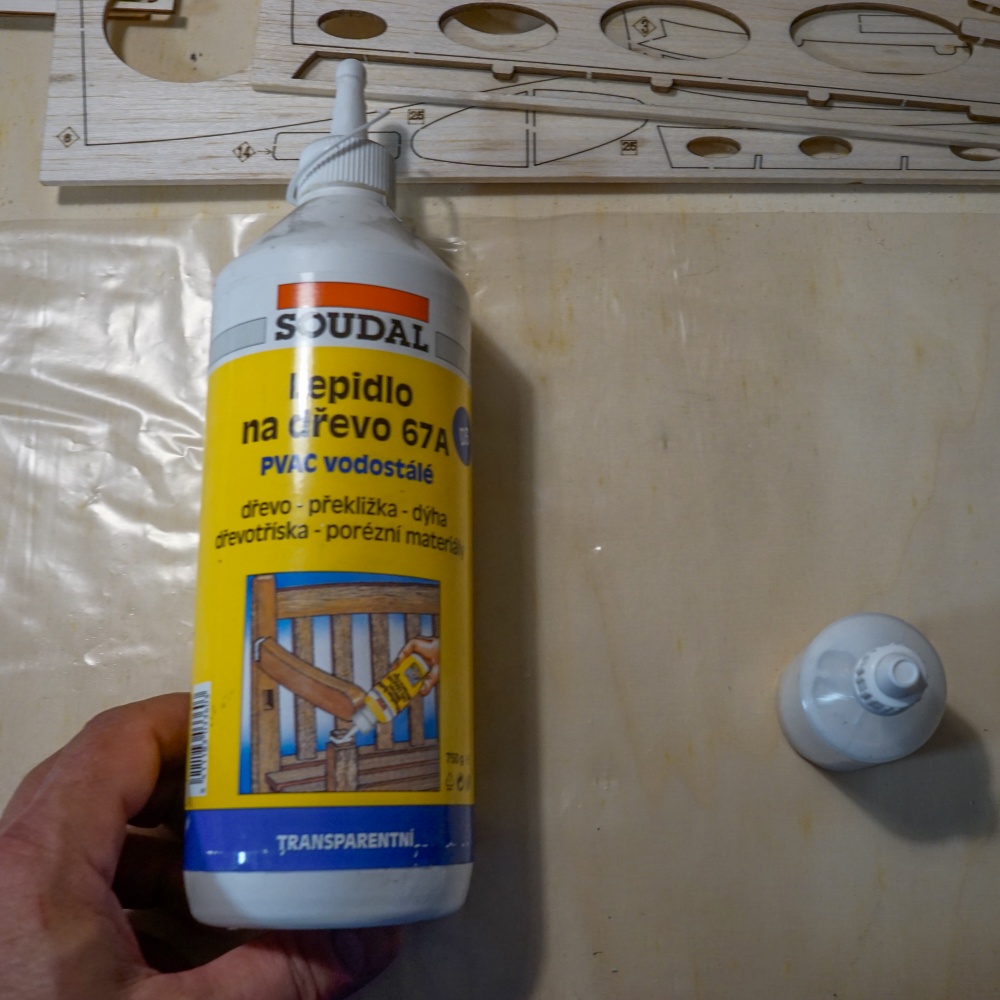 Vythl jsem pracovn desku z laovky, n, disperzn lepidlo a pendlky a pustil se do stavby. Je dost pozd veer, brzy rno vstvm na vlak, ale chci si ulepit alespo kousek.