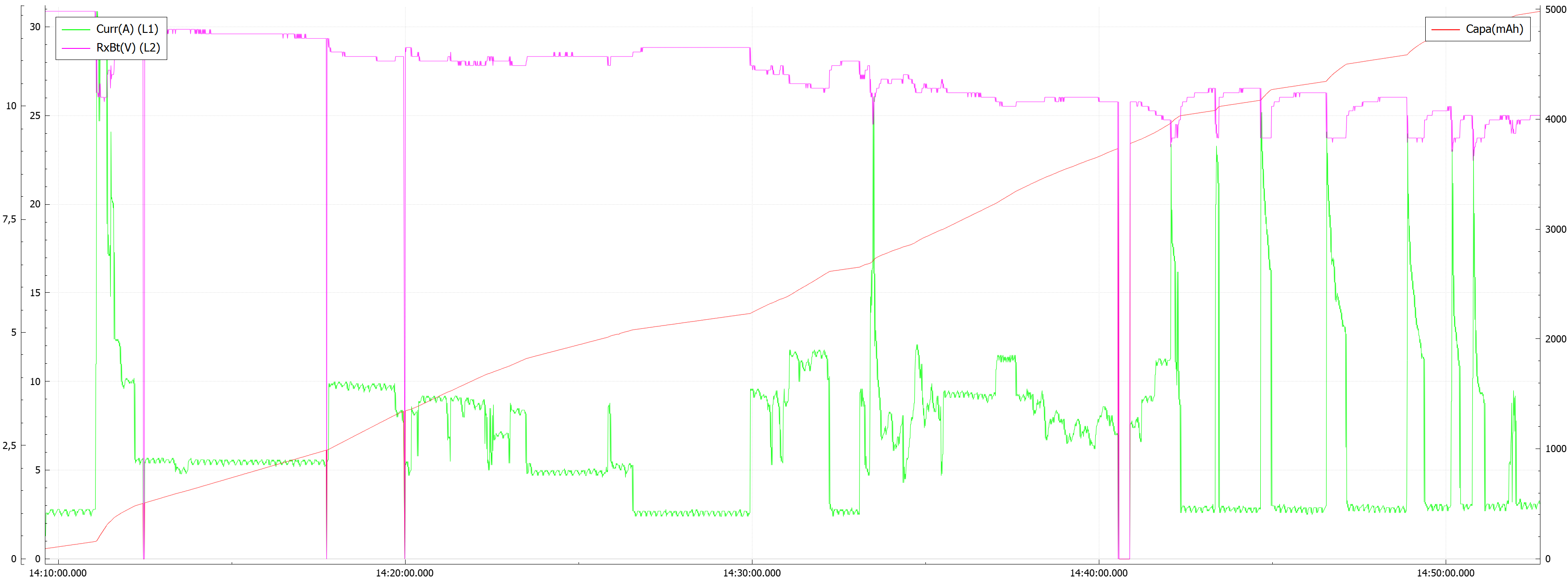 Mám sady 3S2P 6000 mAh. Zkusil jsem to teï v zimì za teploty 4 st.C. Zadání byl letìt co nejdéle motorovì v nìjakém cestovním režimu, obèas zkusit plný plyn, zda dá pøes 10 Ampér, kolik nalétám.