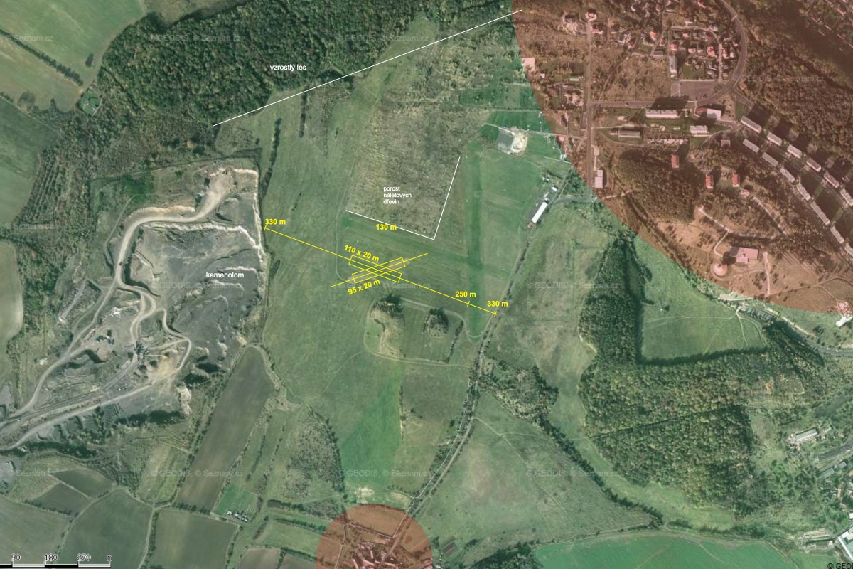 Druhým podstatnì vìtším pøekvapením pro mì bylo, když další kolega létal s velkou Fly Baby (pøes dva metry rozpìtí) a létal mi nad hlavou, když jsem byl na nejvzálenìjším místì od dráhy - na západì u lomu a na východì u silnice. Na každou stranu to je 330 metrù. Kdyby byl model v nìkolika stovkách, tak to pochopím, ale tohle bylo ve výšce do tøiceti metrù pøi otáèení po prùletech a potom pøi nasazování na pøistání. Všichni máme zafixováno, že pøed lomem toèíme nìkde u tyèí, které zde koukají ze zemì. Ty jsou však na polovièní! vzdálenosti.