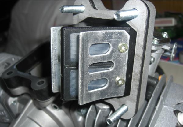 membránový ventil dvouválcového dvoutaktního motoru DLE - foto: Rudla Helmer (kliknutím zvìtšíte)
