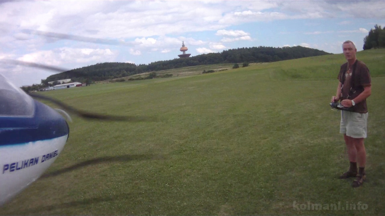 Kamera je na tomhle menším modelu už docela cítit. Pøi prùletu kolem sebe pozoruji, jak model letí ve výkluzu. Kamera má asi velký odpor a zpùsobuje boèení modelu. Stoupání je pomalejší.