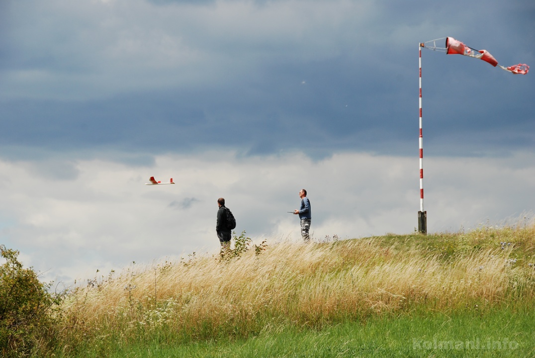 V jednu chvíli vítr úplnì ustává, model se rychle propadá pod hranu a mám co dìlat vùbec ho u kopce otoèit. Je to takový ten stav, kdy vykøikujeme: "Není vzduch!" Už jsem tìsnì nad loukou dole pod kopcem a šmátrám po pojistce motoru, abych se zachránil krátkým zavrèením, když tu náhle pøichází pytel horkého vzduchu a model jakoby zdvižen neviditelnou lopatkou nabírá výšku. Ještì stále je skoro neøiditelný, neletí poøádnì dopøedu, ale stoupá. Už je o deset metrù výš a zase letí. Bublina mizí nìkde za mnou, vítr se zase rozfoukává a svah zaèíná nosit.