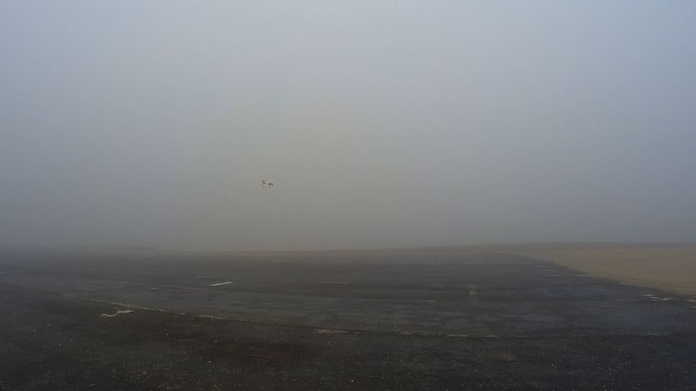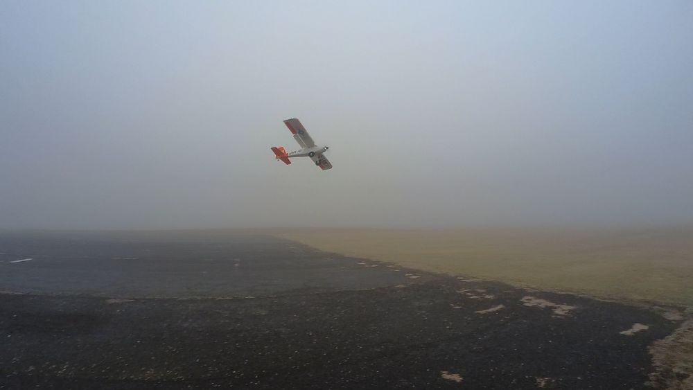 Ještì se úplnì nerozednilo a už se na nás sápe z nižších poloh mlha. Nejdøíve to je šero nìkde dvì stì tøi sta metrù daleko, ale po nìkolika minutách letu jsou chuchvalce mlhy až u nás.