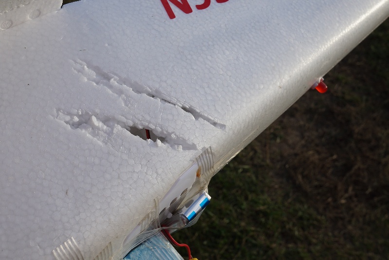 Pøekvapilo mì, jak malý akrobat s pomìrnì slabým motorem a lehkou vrtulí dokáže poboøit mnohem vìtší letadlo. Vrtule prosekla trup Timbera v místì polopøepážky, 2.5 centimetru tuhé pìny. To jsem koukal!
