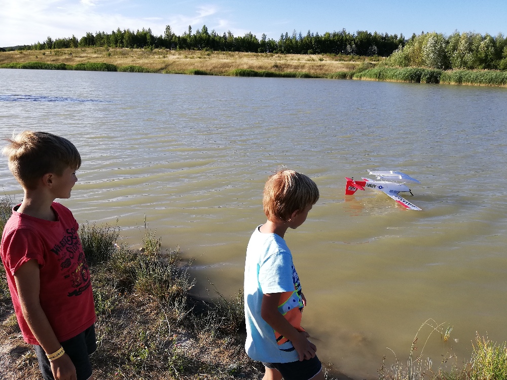 Kluci pøijeli s Free Bee, ale to je v tom vìtru také osouzeno k couvání. Vylétal jsem tedy dvì baterky s hydroplánem, ale podmínky byly opravdu drsné. Vlny byly zpestøení, vypadalo to jak na moøi, ale turbulence nad vodou znemožòovala nìjaký uspoøádaný let. Zkusil jsem zapnout stabilizaci, to pomohlo, ale stejnì se letadlo v poryvech zmítalo nahoru dolù.
