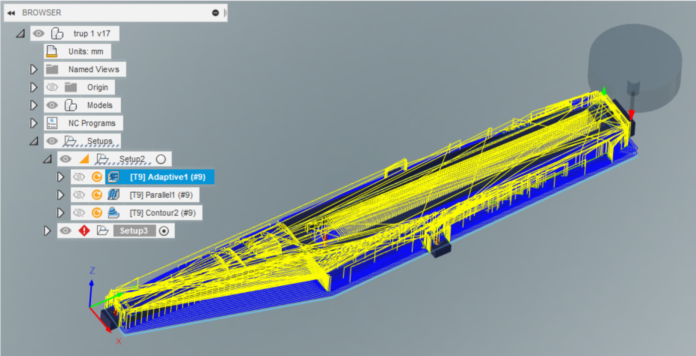 Pøíprava výroby - obrábìní ve 3D na CNC ve Autodesk Fusion obnáší naklikat nìkolik operací, nastavit u nich parametry. Snadno èlovìk na nìco zapomene.