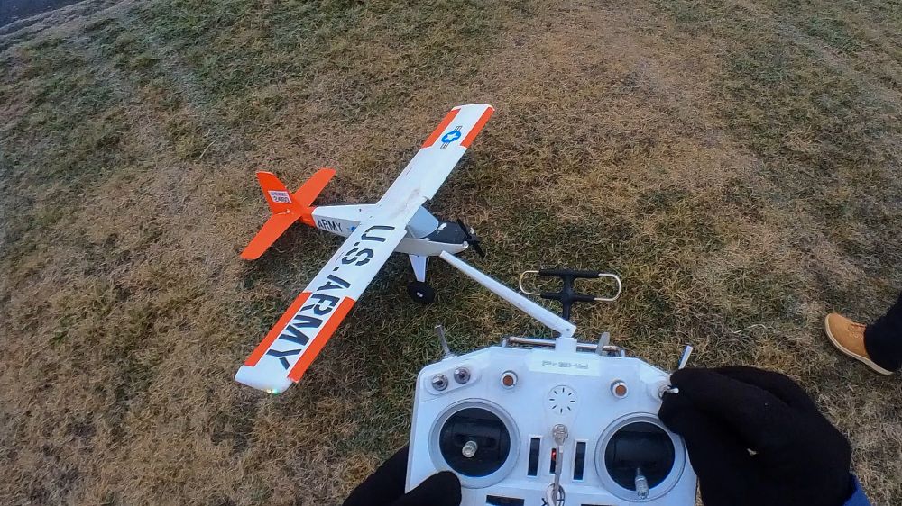 Doposud bylo kolem pìti stupòù a na létání nebylo tøeba se tak navlékat. Dnes je -0.5, na silnici k letišti bylo náledí a tak jsme s Karlem oba navleèení ve více vrstvách obleèení a hlavnì v teplých botách.