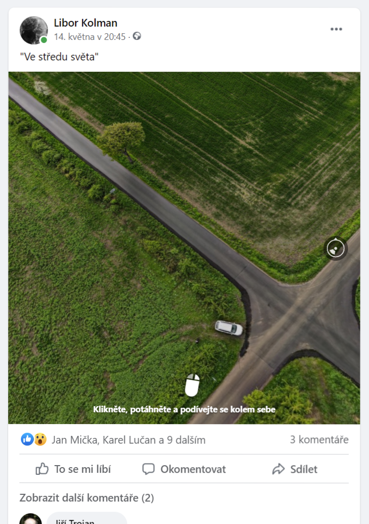 Na Facebook staèí hotovou fotku 360 nahrát, sám pozná, že to je sférická fotka a zobrazí ji s rozhraním, které umožòuje otáèet pohled.