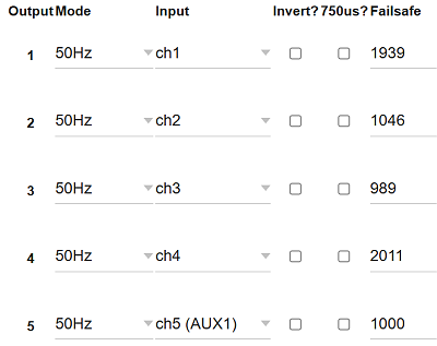 - pijma ELRS s konektory pro pipojen bnch serv (PWM).