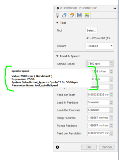 V CAM workspace MANUFACTURE lze zjistit vnitøní promìnné najetím na položku a držením Shift.