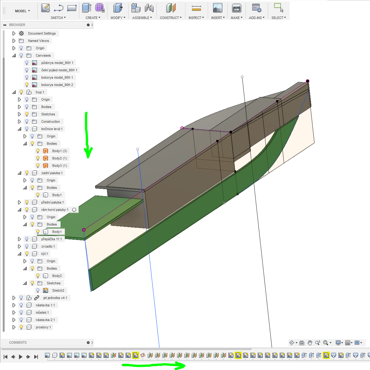 Komponenty v browseru nalevo jsou seøazeny shora dolù tak, jak postupnì vznikaly v èase. Stejnì jako historie dole.