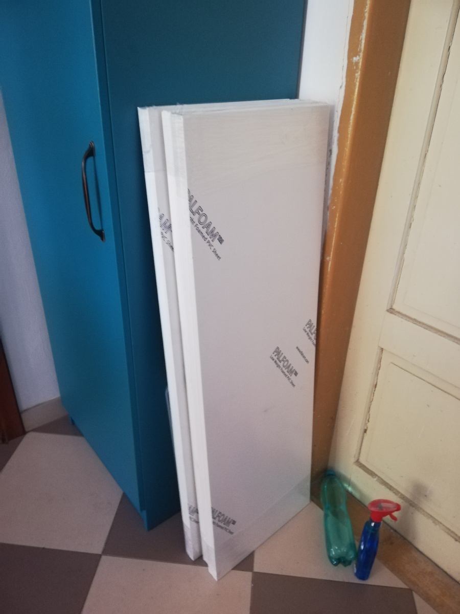 Zvolil jsem pro nákup materiálu tloušku 3 a 5 milimetrù. 3 milimetry jsem vidìl používat na Youtube pøi stavbì karosérií RC aut, 5 mm jsem zvolil jako bytelnìjší variantu pro loï. Nakoupil jsem PVC desky prodávané pod obchodním jménem Palfoam.