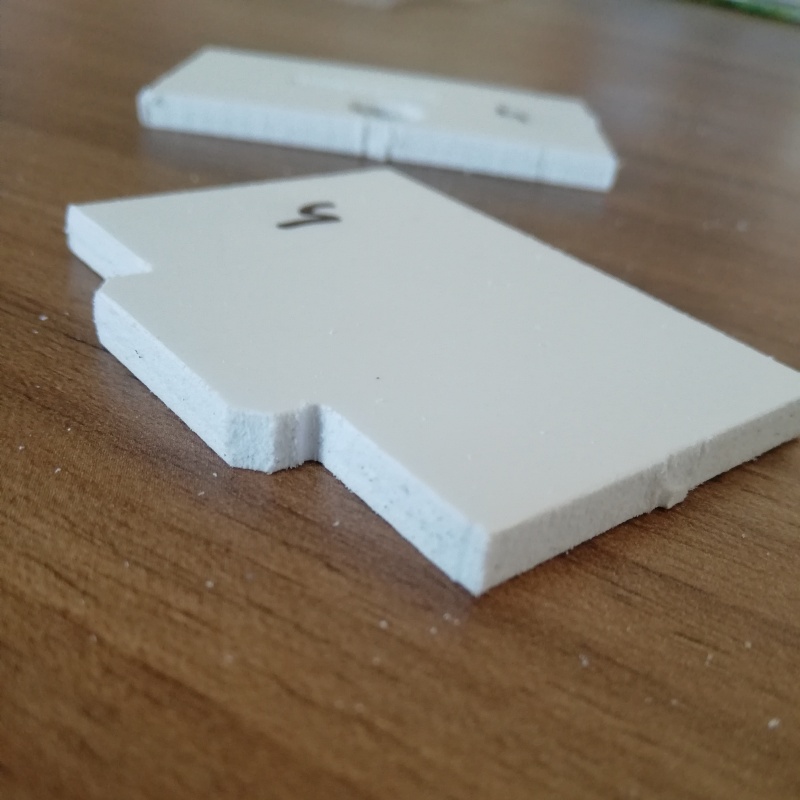 Po øezání jsou díly dost chlupaté, ale jsou to jen špony u horní hrany øezu. Snadno se dají pøejetím tøeba hranou nože odstranit. Vlastní øez je èistý. Výstupek na hranì je zbytek mùstku, kterým drží díl ve výøezu.
