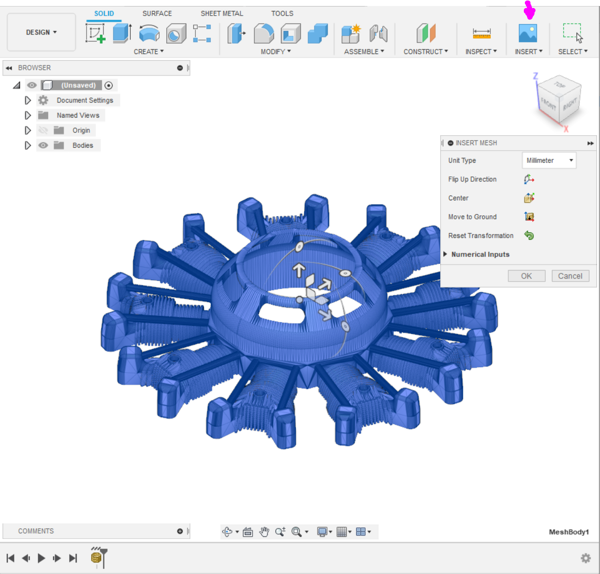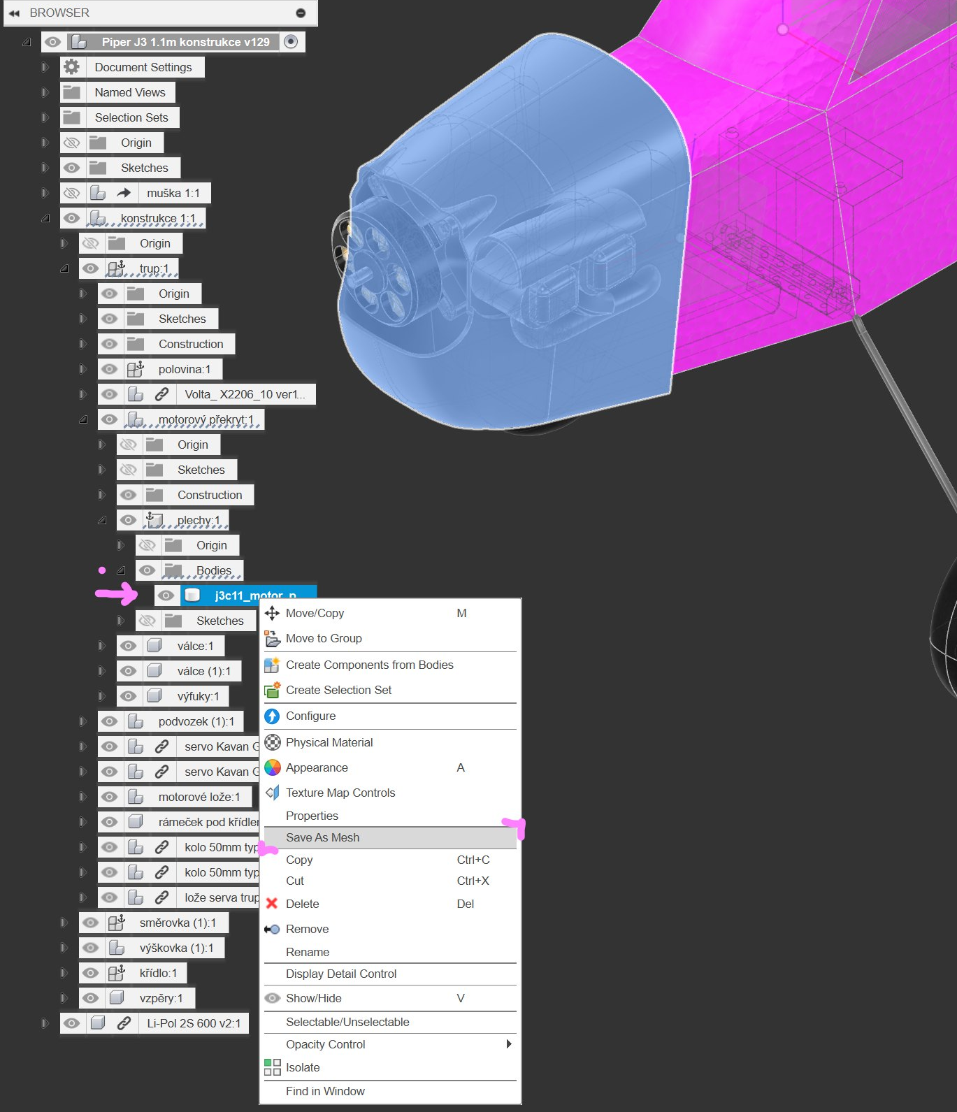 STL je po vloen do Fusionu objekt typu mesh.