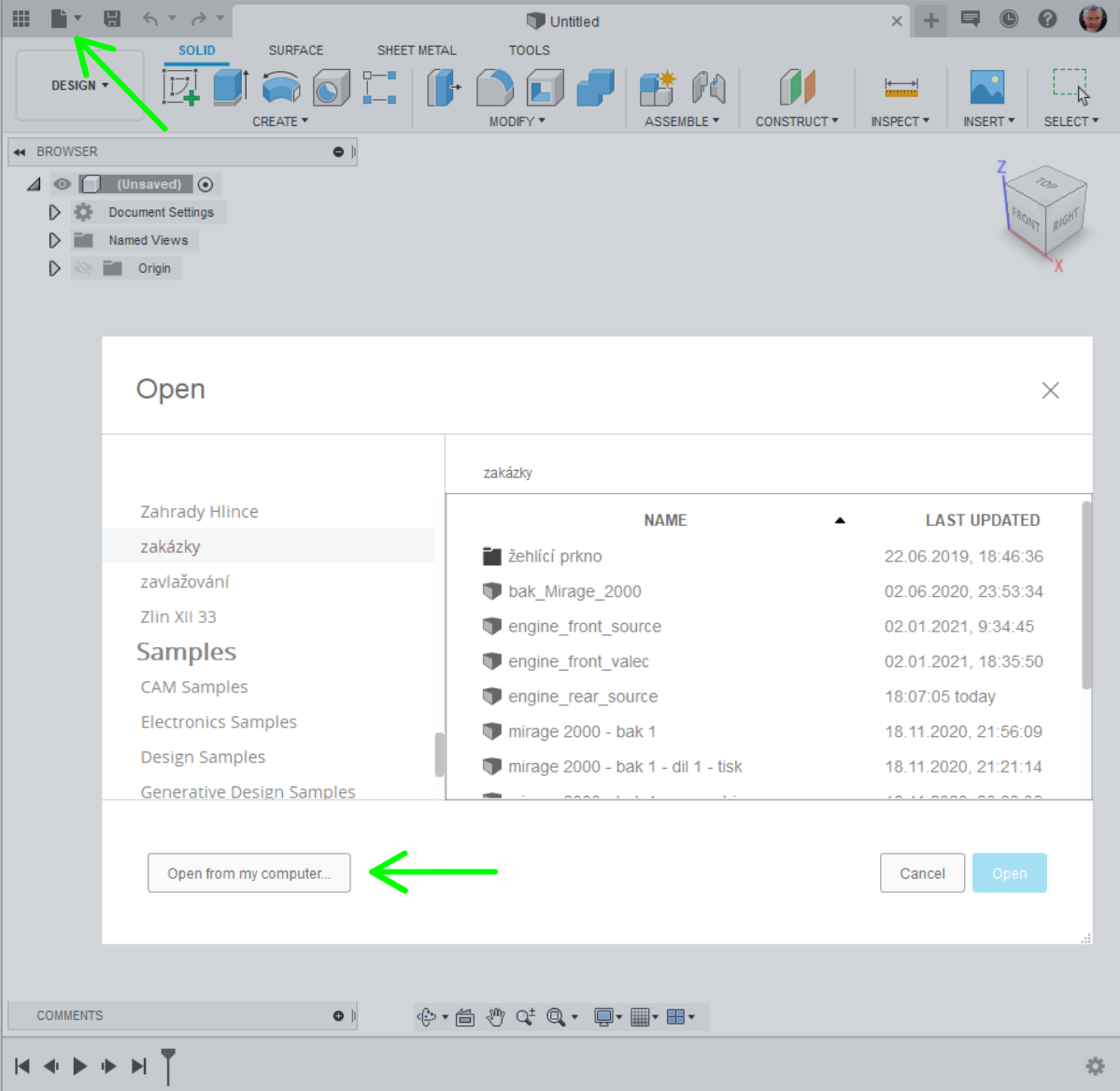 Je jet jin cesta. Volba File - Open - Open from my computer. Oteven STL touto cestou nenabz nastaven jako ve popsan Insert a vlo STL ve patnch rozmrech!
