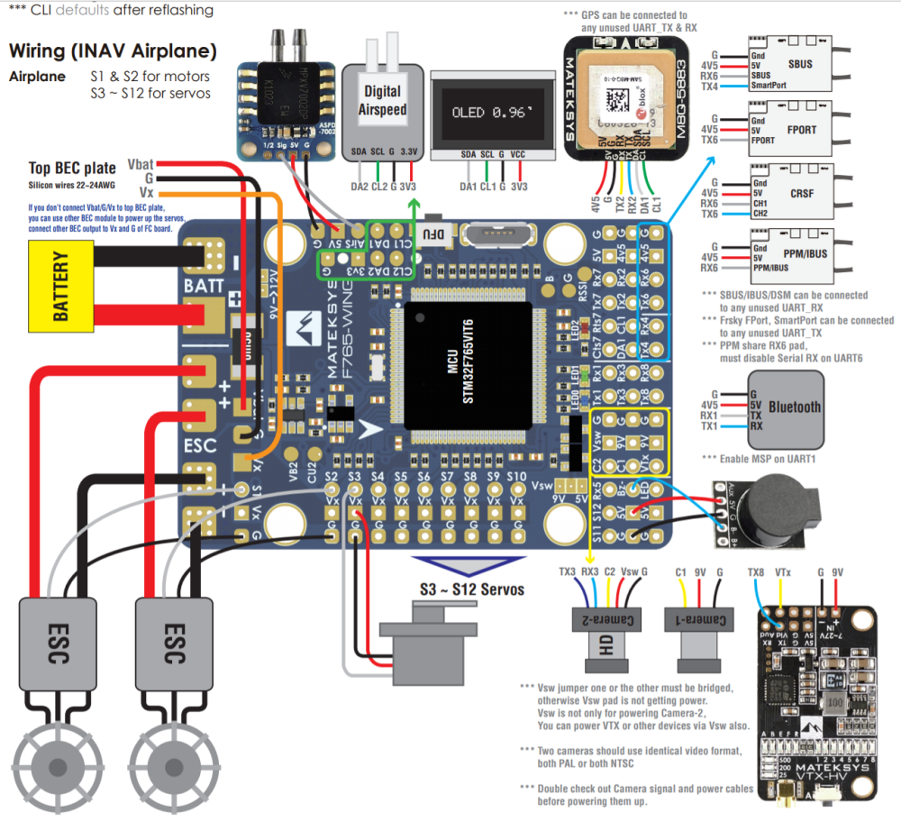 FC je v letadle dal zazen, kter je teba do letadla nkam umstit, umstit se mus GPS jednotka, mezi pijmaem, FC, GPS a vyslaem videa FPV jsou kablky, k FC by ml bt pstup, aby se dal pi nastavovn systmu propojovat s potaem. Systm FC (INAV) je teba nastavit, aby dokzal dit vae letadlo, je teba se nauit pracovat se zvolenm systmemu, je teba se starat o updaty systmu. Znamen to tak njak pjen, ten dokumentace v anglitin.