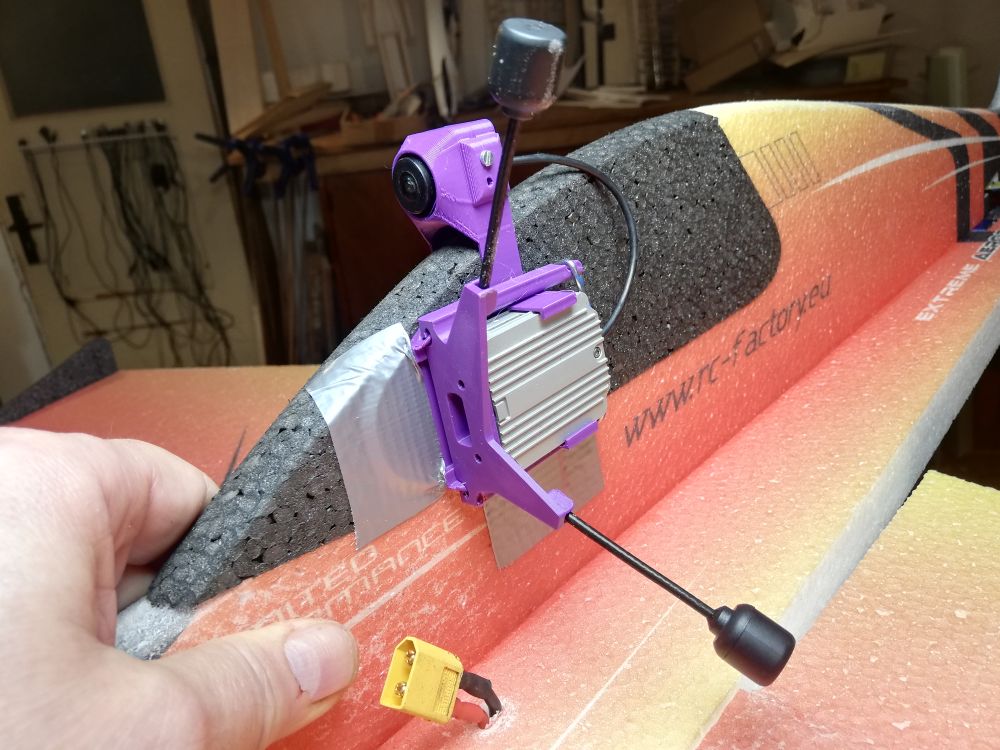 FPV lze instalovat do letadla prakticky nezvisle. Kamera s vyslaem se pidl na model, jen se spoj s pohonnm akumultorem.