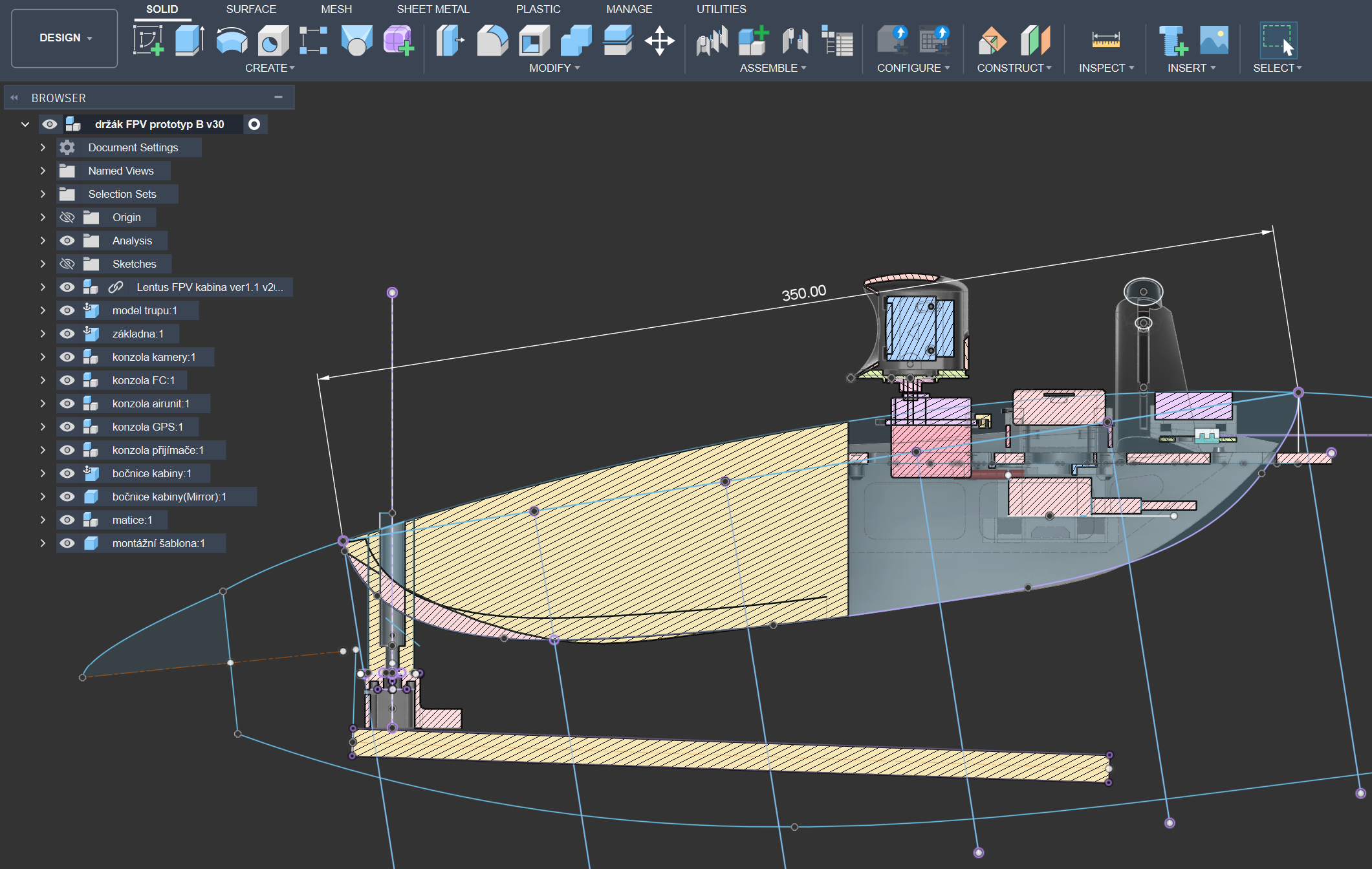 Abych mohl laborovat s instalac FPV, abych nebyl svzn njakm malm prostorem v trupu, mlo by tm vtronm bt nco, kam se FPV vybaven v pohod vejde, a ml by to bt stroj, kter m dobr letov i vkonov parametry. Tak jsem se postupnou selekc dopracoval a k Lentusovi. Mm ho v ruce, msta v nm je dost, lt dobe.