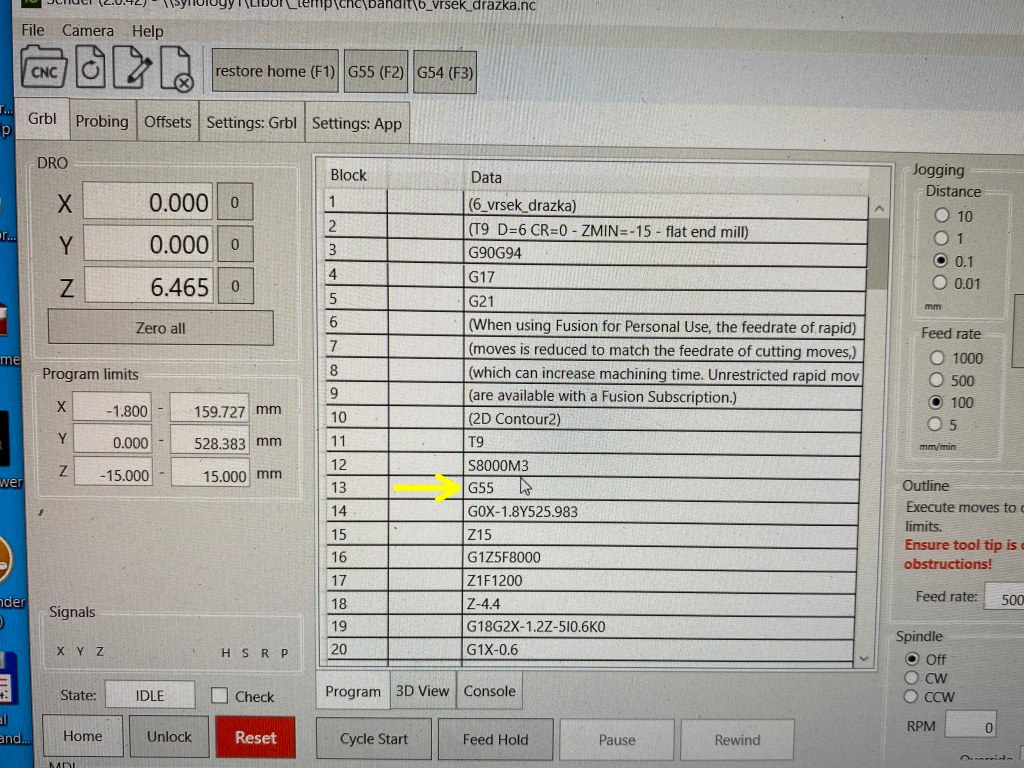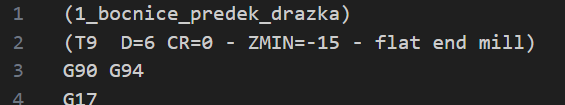 Pøed spuštìním stroje kouknu na poèátek programu a podívám se, jaký poèátek souøadnice tam je nastaven: G54, G55, G56, G57, G58, G59