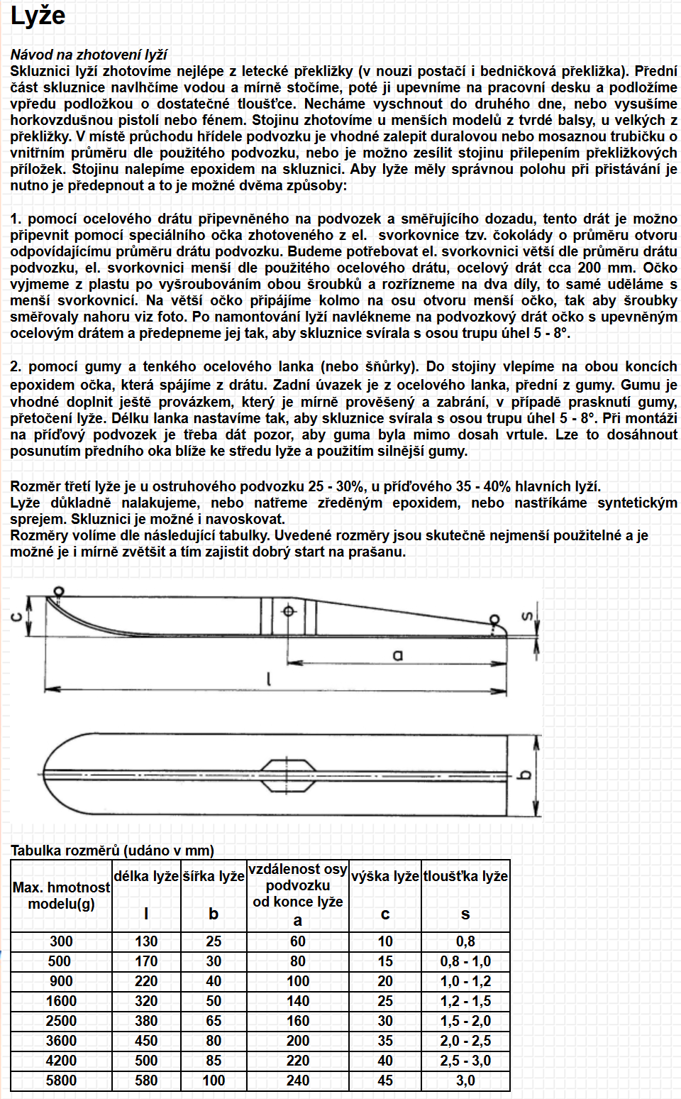 Rozmìr lyží je 500 x 100 mm. Výroba a montáž se dá zvládnout za dva dny.
