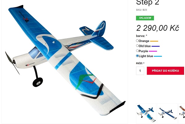 Blízko velikostí je Step 2 od RC Factory. Co o vybavení píšou: Rozpìtí: 1140 mm, AUW: 350 g, Motor: 2204 - 2206, Regulátor: 15A, Servo: 4 x 6g, Baterie: 450 3S, 600 2S (25C), Vrtule: 8x4.1