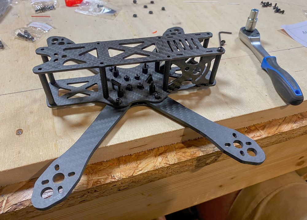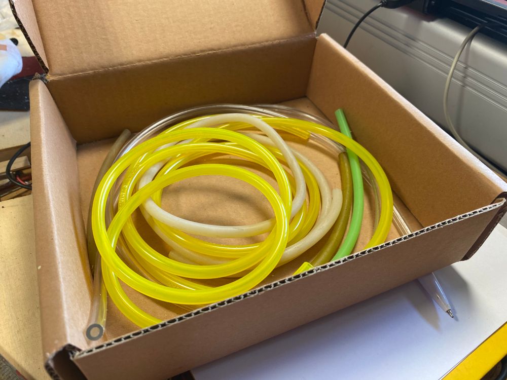 Kdy montuji desku regultor a nad n flight controller, nevychz mi sloupky a distann vloky dodan s rmem. To pilo na adu "vybaven modelsk dlny", v tomto ppad krabice s hadikami k "benzku", ze kterch jsem si naezal distann krouky potebn vky.