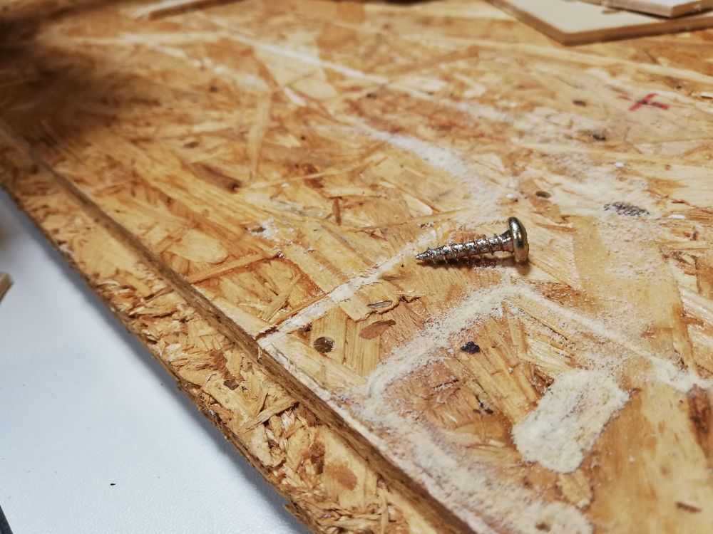 J jako podloku pouvm OSB desku, zbytek po svm budovn podlah. Deska je trvale poloena na stole, U profily, ktermi se normln materil upevuje, jsou do drek zastreny vzhru nohama a plokou je deska pitaena ke stolu.