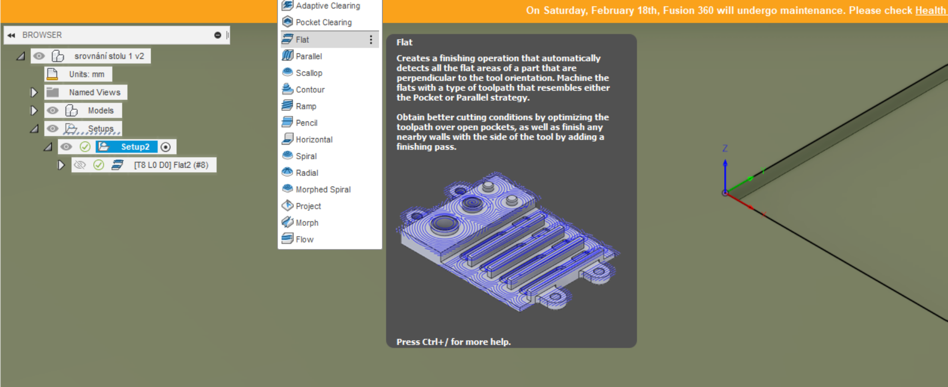 Ve Fusion to mm zadan jako operaci 3D Flat,