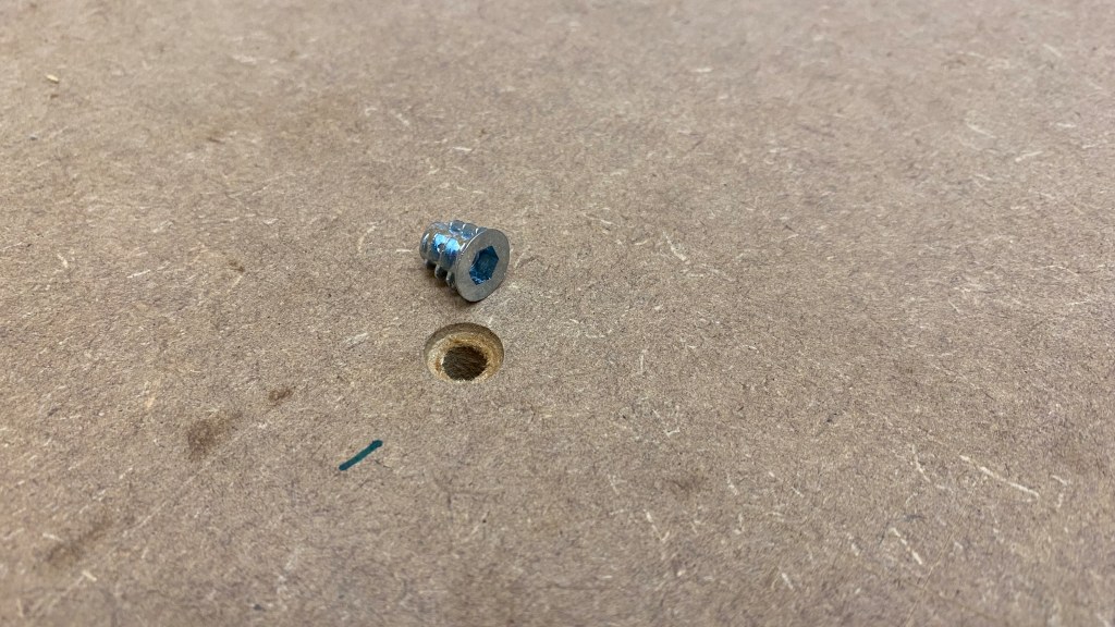 Pro matici vytvom strojem ve stole na potebnm mst dru, do kter matici shora imbus klem zavrtm. Na zatek jsem si do stolu dal matice ve dvou adch a pouvm je k pichycen spoilboard, viz Spoil board. Pak jsem podle poteby pidval do plochy stolu matice pro uchycen obrobk pmo ke stolu.