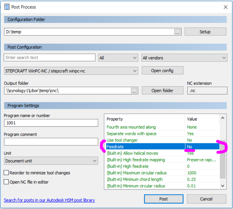 Exportuji a mám ve Fusionu do Post Configuration vložený cps soubor dodaný výrobcem stroje.