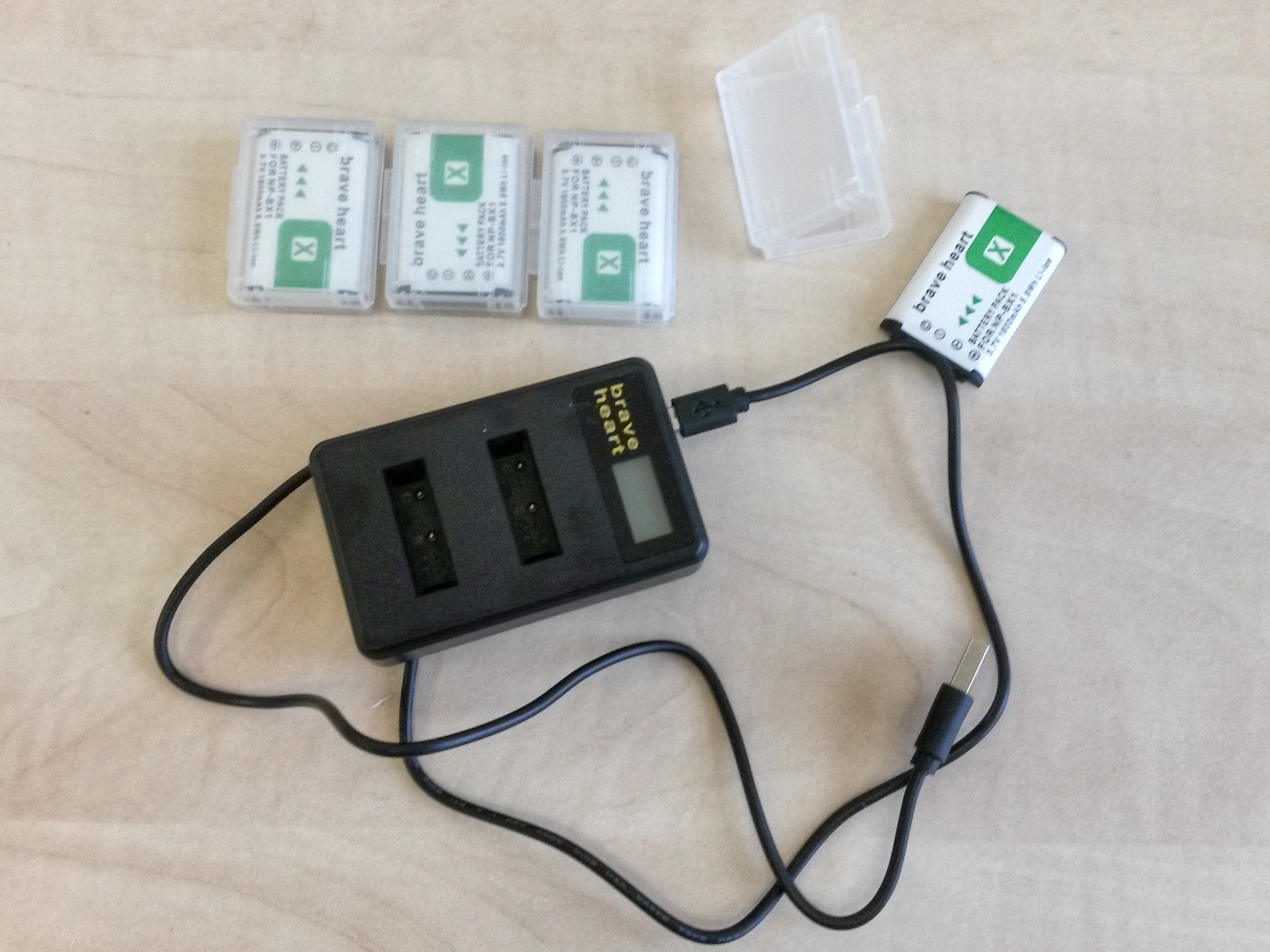 Protože natáèím èasto daleko od zásuvek s elektrickou energií, i ke kameøe X3000 jsem chtìl mít záložní akumulátor. Není nic blbìjšího, než skonèit na vybitý akumulátor. Poøídil jsem si náhradní akumulátory èínské provenience. Mají uvedenu kapacitu 1600 mAh. To je o dost víc než 1240 mAh akumulátoru dodaného s kamerou.