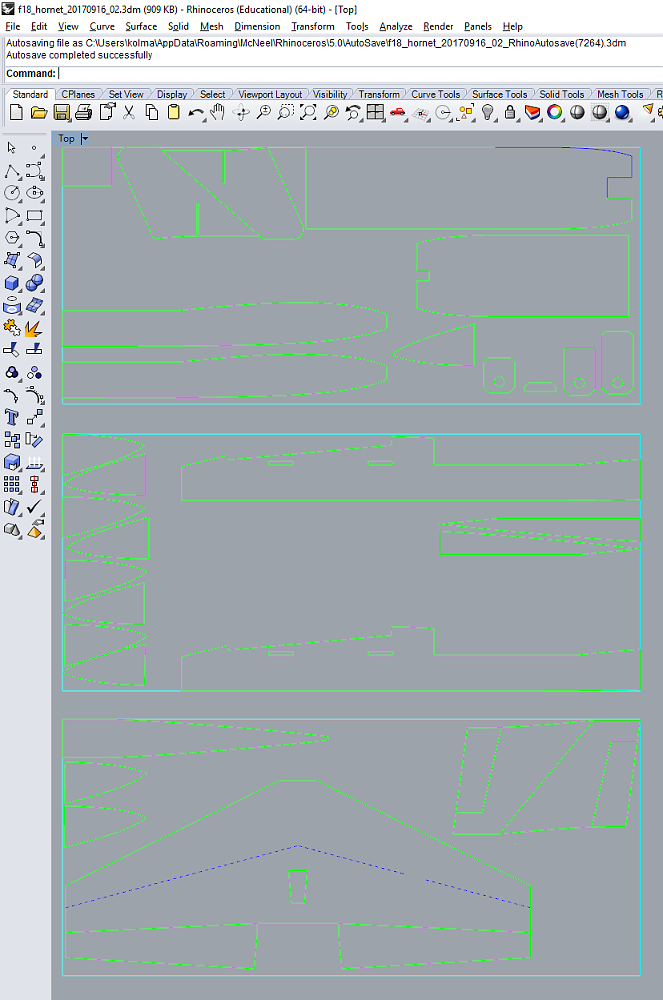 Šablony jsem vytiskl na tiskárnì A3, vystøihl, nalepil kanceláøským lepidlem na desku XPS a zaèal øezat. Chce to opravdu ostrý nùž! Shodou okolností jsem v tu samou dobu pokroèil v jednaní s kamarádem, zda by bylo možné nìco modeláøského vyøíznout na CNC stroji. Tak jsem nùž odhodil po vyøíznutí prvních tøech dílù a rozhodl se zkusit to více prùmyslovì, nìco se nauèit, vyzkoušet! Karel už tou dobou nožem krájí svùj Depron! image