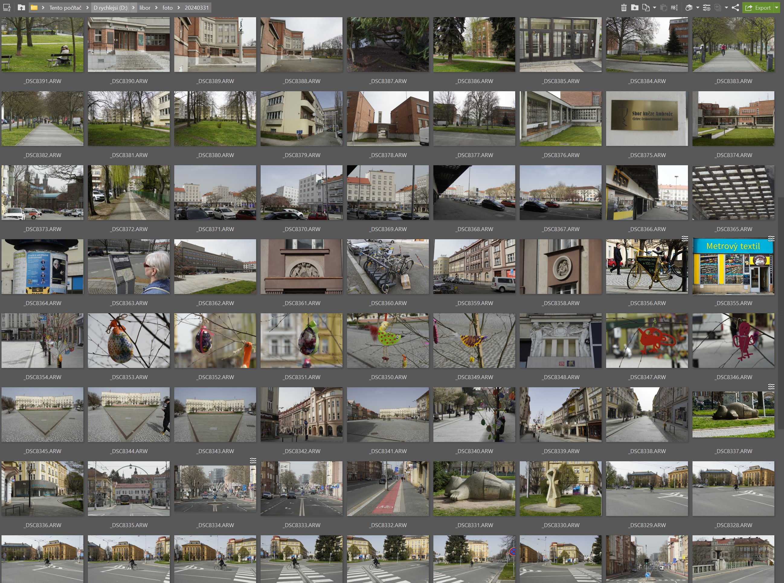 V prvním výbìru se zbavuji vyslovenì nepovedených fotek, fotek, které jsem udìlal jen jako zkušební, fotek na první pohled neostrých nebo jinak hodnì expoziènì pokažených. Samozøejmì prvním krokem je záloha celé složky nìkam jinam, odkud si fotku mohu vzít, kdybych nìjakou smazal omylem.