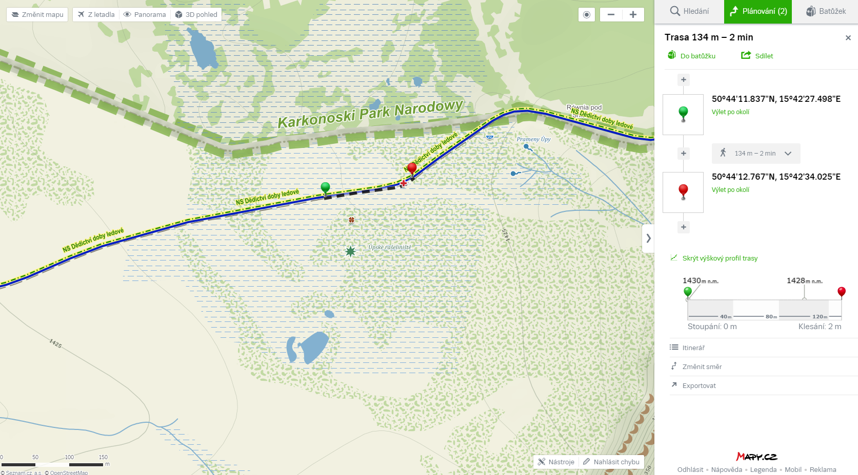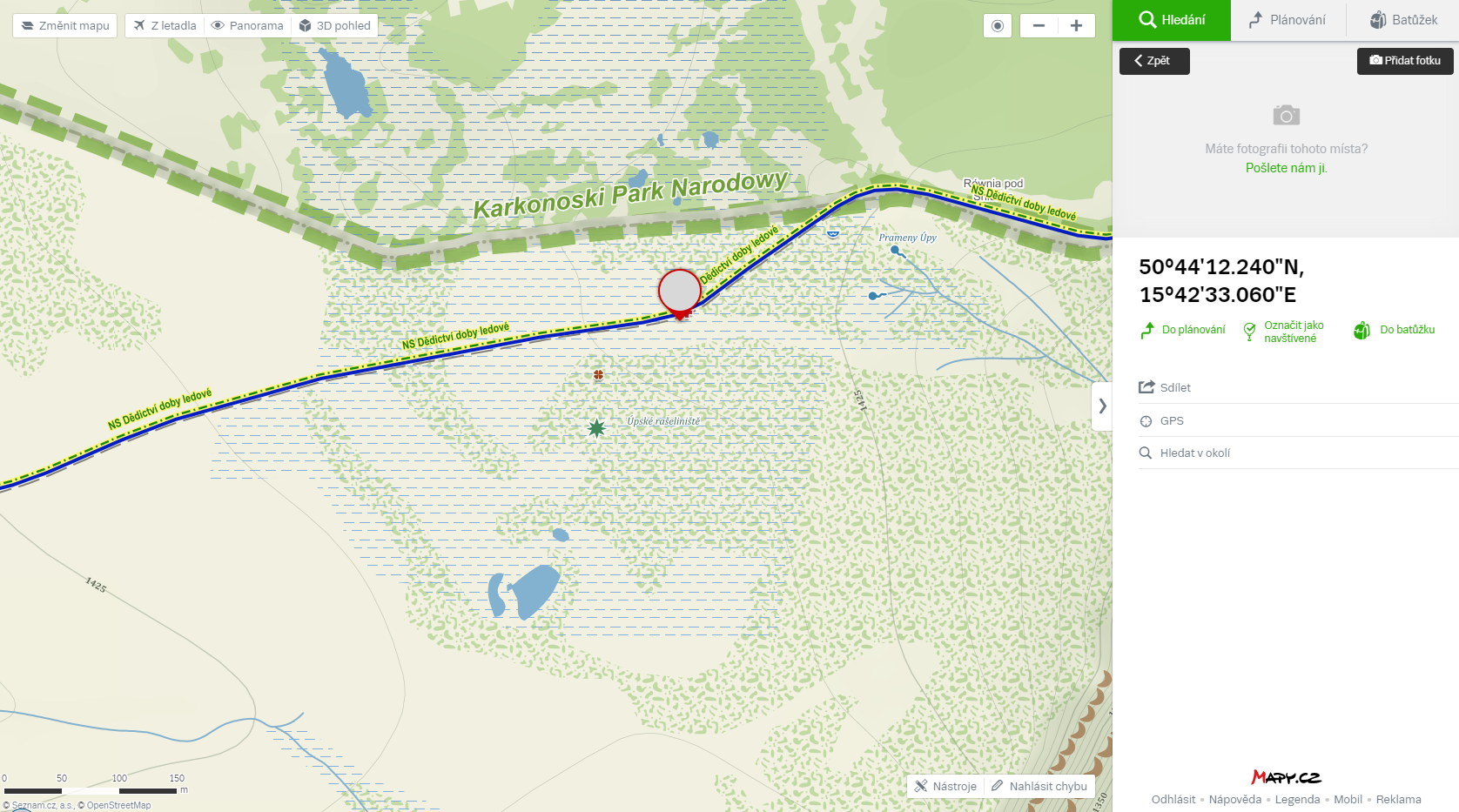 Nadmoøská výška urèitého místa na mapy.cz st�l� odkaz / permalink