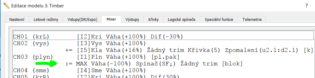Nejdøíve jsem provádìl blokování motoru takto - v mixu: