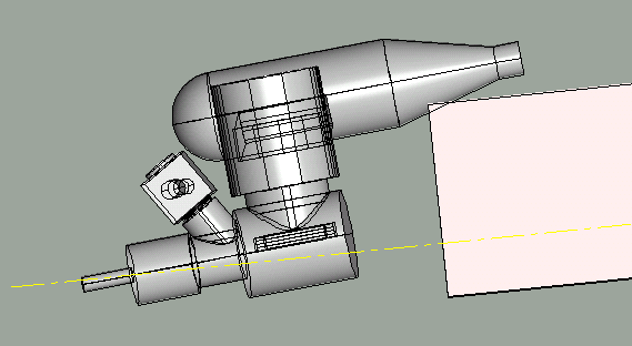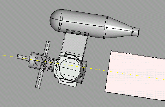 Na obrazcch je vidt smysl vyosen motoru. Trup je naznaen jen schematicky. Vimnte si, kudy prochz lut osa. Je to osa rovnobn s osou trupu prochzejc stedem otvoru pro unae vrtule. Je to zu zdraznno proto, aby se vm nestalo, e svrtte loe motoru s motorovou pepkou bez nastavenho vyosen. Vstupn hdel vm bude prochzet pkn stedem otvoru v motorovm krytu. Potom motor vyoste podkldnm motorobho loe a najednou vm pjde vstupn hdel mimo otvor v motorovm krytu.