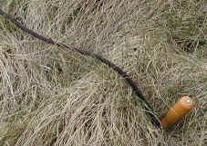 Tip: Jsou místa, kde kolík nejde do zemì zarazit. Bývá to na místech, kde podloží tvoøí skála s velmi tenkým drnem navrchu. V takovém pøípadì si poøiïte smyèku z kusu lanka, kterou budete navlékat tøeba na nìjaký kámen nebo kmínek keøe. Kroužek gumicuku bude navleèen místo na kolíku na tomto lanku.