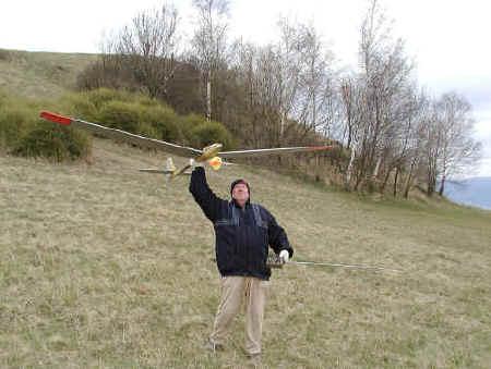 Já sám mám zkušenost se starty 2.5 kg vìtronì s rozpìtím 4 m a za bezvìtøí jsem ho nedokázal vytáhnout více jak do 20 až 30m. Za vìtru 5 - 7 m/s to šlo. Létání v termických dne tak nebylo nic moc, protože za takových dní se vítr toèí a u tohoto modelu staèil slabý vítr do zad a dosažená výška staèila tak tak na malý okruh. Do termiky jsem se tak nemohl dostat. Lépe jsem si tak zalétal na svahu.